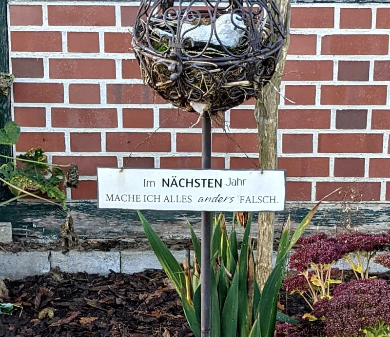 Im nächsten Jahr mache ich alles anders falsch! Gute Vorsätze für das neue Jahr. Mit einer gewissen Selbstironie tut es immerhin nicht so weh. Schöner an Neujahresvorsätzen scheitern, als Vorgartenschild. Lustige Schilder / Lustige Sprüche. DNFX!